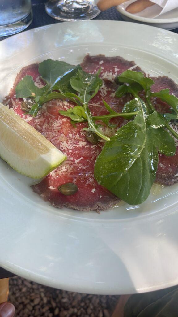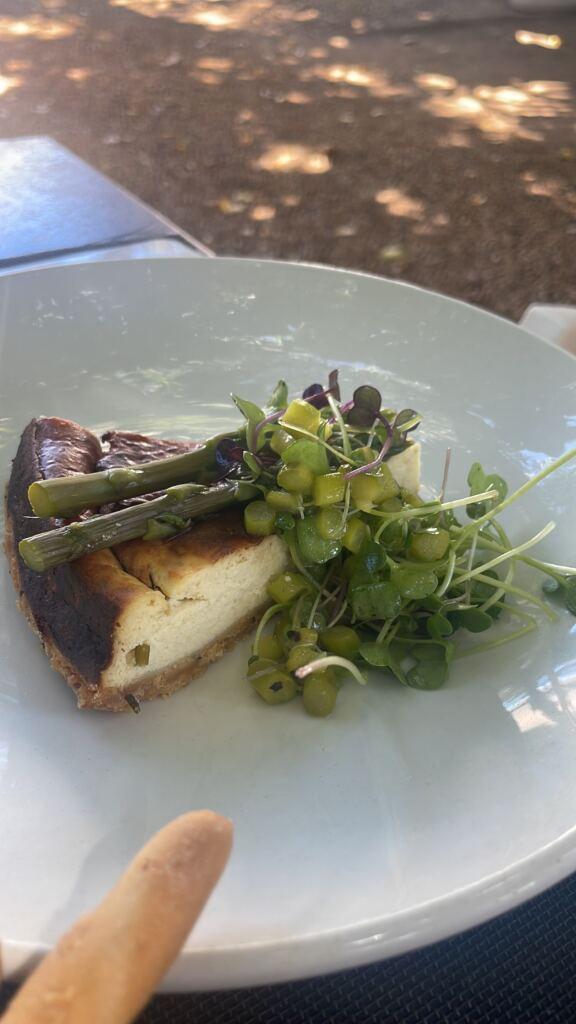 Eine kleine Lunchpause bei einem sehr einladenden Weingut – Sommerbosch: Kudu Carpaccio und ein getrüffelter, herzhafter Käsekuchen.